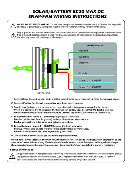 20" AC HAF Snap Fan Horizontal Air Flow, Brushless Motor, Variable Speed